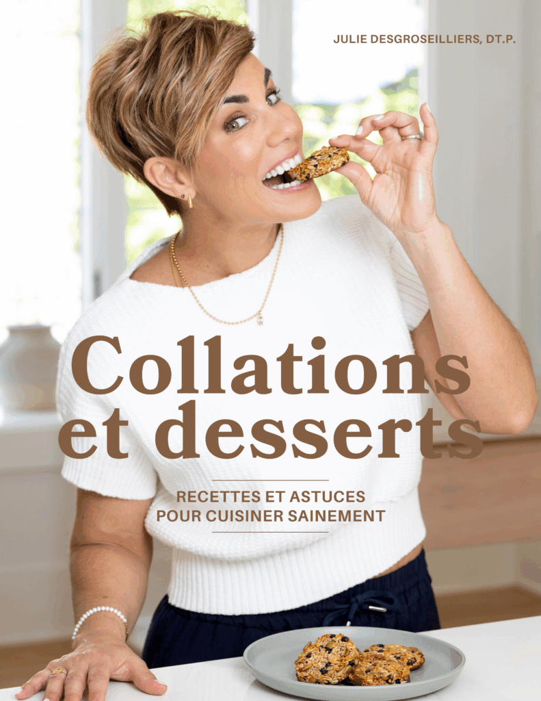 Pour encore plus d’astuces et de recettes gourmandes à préparer avec moins de sucre, je vous invite à vous procurer mon ebook Collations et desserts santé.