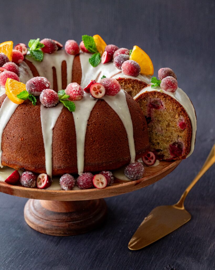 Cette recette de gâteau Bundt à la canneberge, orange et menthe est l’idée de Josiane, une stagiaire en nutrition de l’université de Montréal. Je lui ai demandé de développer un dessert qui allait faire “WOW” pour le temps des Fêtes! On peut dire que c’est mission accomplie. Ce gâteau est parfait pour les grandes occasions et met en vedette un fruit que j’adore, soit la canneberge.