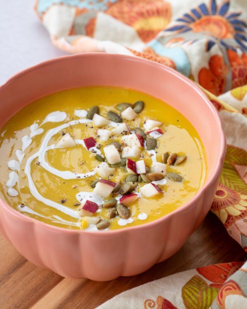 - Garnitures au choix : yogourt grec nature ou crème sure, graines de citrouilles rôties, cubes de pomme, feuilles de coriandre fraîche ou de persil plat ciselées (facultatif)