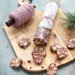 Ce saucisson au chocolat fait partie de ces desserts qu’on associe instantanément au temps des fêtes. C’est le genre de recette qu’on voit défiler année après année sur les réseaux sociaux à l’approche de Noël. Quelle belle découverte! Pratiquement sans cuisson, rapide à préparer et facile à servir, il trouve naturellement sa place sur une table de desserts ou un plateau à partager. Sa forme originale attire l’œil et amuse toujours petits et grands.