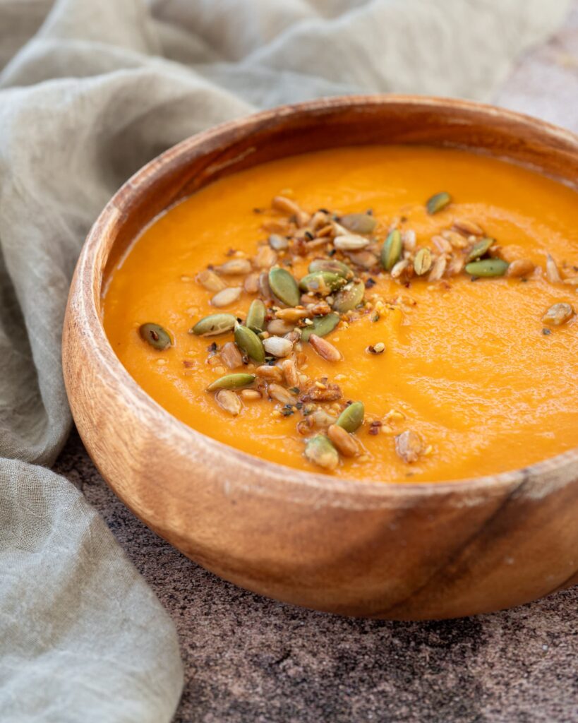 - Garnitures au choix : noix et graines grillées, fromage fêta ou parmesan râpé, quelques gouttes d'une bonne huile d'olive extra vierge, persil frais ou basilic